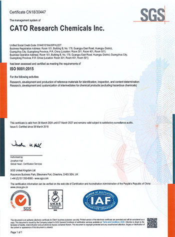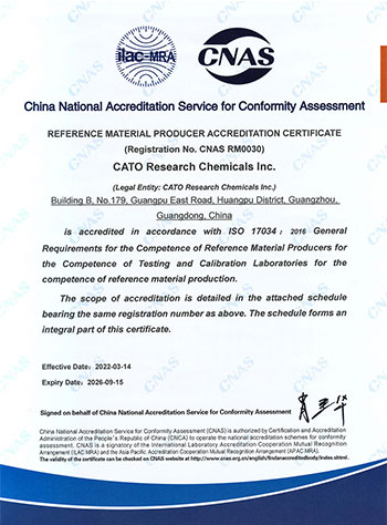 CATO Research Chemicals Inc. (Chinese corporate name: 广州佳途科技股份有限公司) was established in Guangzhou, China in November 2016. CATO is a technology-driven, vertically integrated manufacturer of certified reference materials (CRMs), analytical reference standards, and pharmaceutical impurity standards, sold under the CATO® brand.